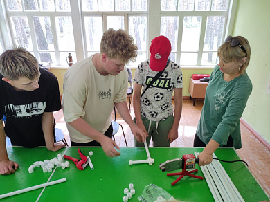 Участники смены были поделены на группы и по очереди проходили мастер-классы. В этот день дети научились гнуть листовой металл, чтобы изготовить металлическую салфетницу, собирать конструктор по схеме и запускать с помощью пульта роботов. Познакомились с устройством сварочного аппарата и самые смелые попробовали спаять полипропиленовые трубы.