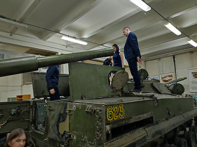 Директор Политехнического института КГУ Алексей Хомичев рассказал о предлагаемых специальностях института, условиях обучения по специалитету и бакалавриату. Уникальной особенностью обучения является освоения студентами некоторых программ в Московском государственном техническом университете имени Н. Э. Баумана в очном и заочном формате, на также в образовательной организации есть возможность пройти военную службу на военной кафедре. Для желающих начать трудовую деятельность раньше, во время учебы в институте, также предоставляется возможность совмещать обучение и работу. Ребята увидели боевые машины пехоты и смогли посмотреть их строение изнутри. Будущим инженерам полученная за день информация была очень полезна и дала повод задуматься о дальнейшем выборе специальности и направлении.